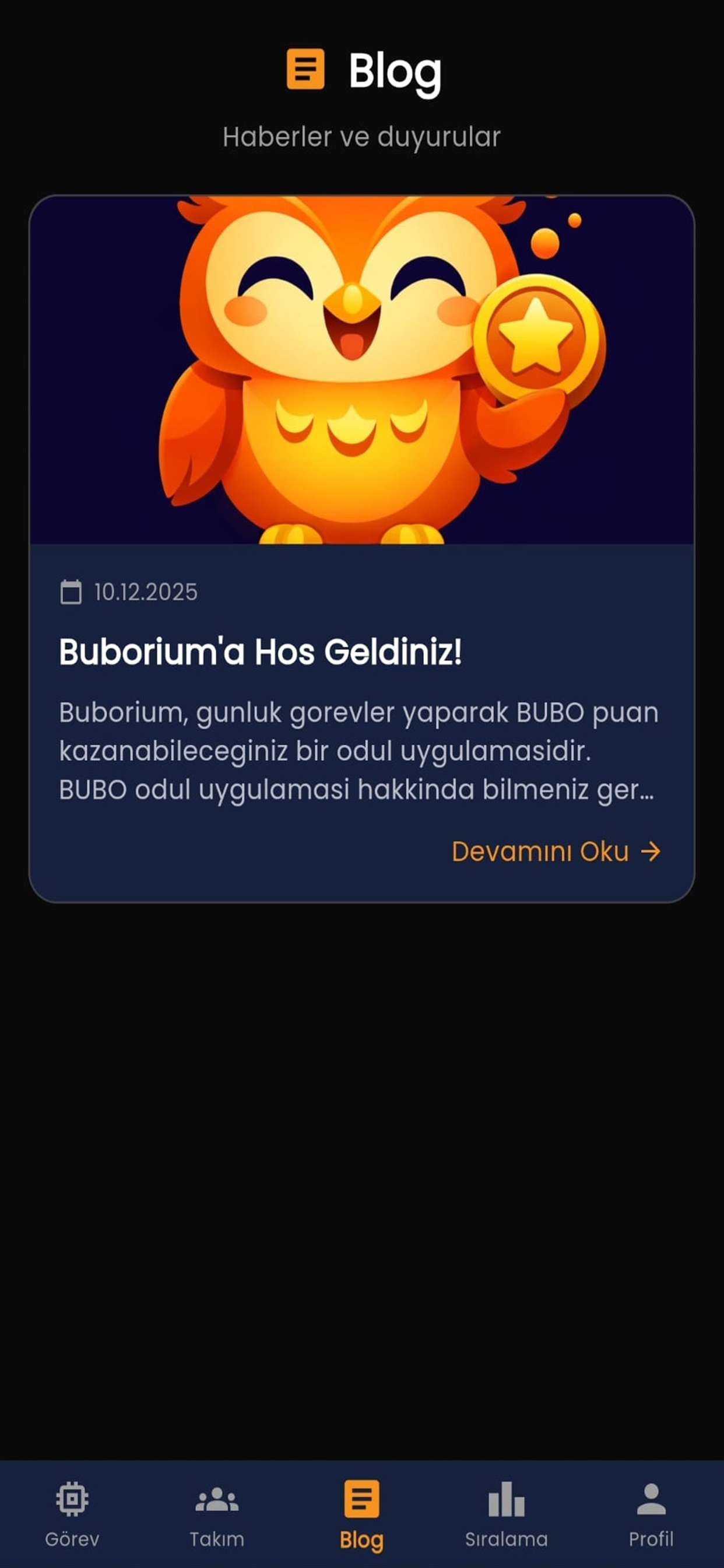 Buborium’da görev sistemi sayesinde uygulamayı düzenli kullanan kullanıcılar avantaj elde eder. Görevler tamamlandıkça puanlar artar ve ilerleme hızlanır.
